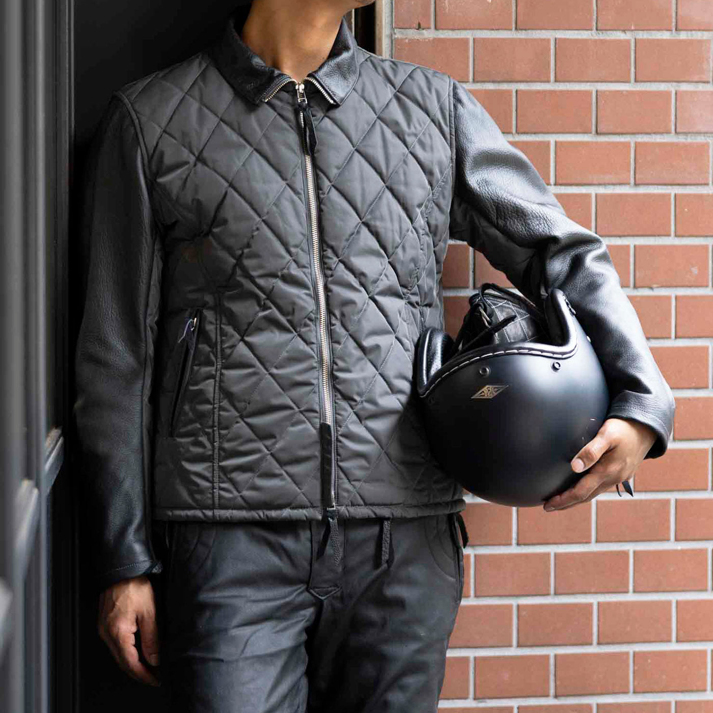 その名の通り、袖はレザー(本革のウォッシャブル)で身頃の表地がキルティング