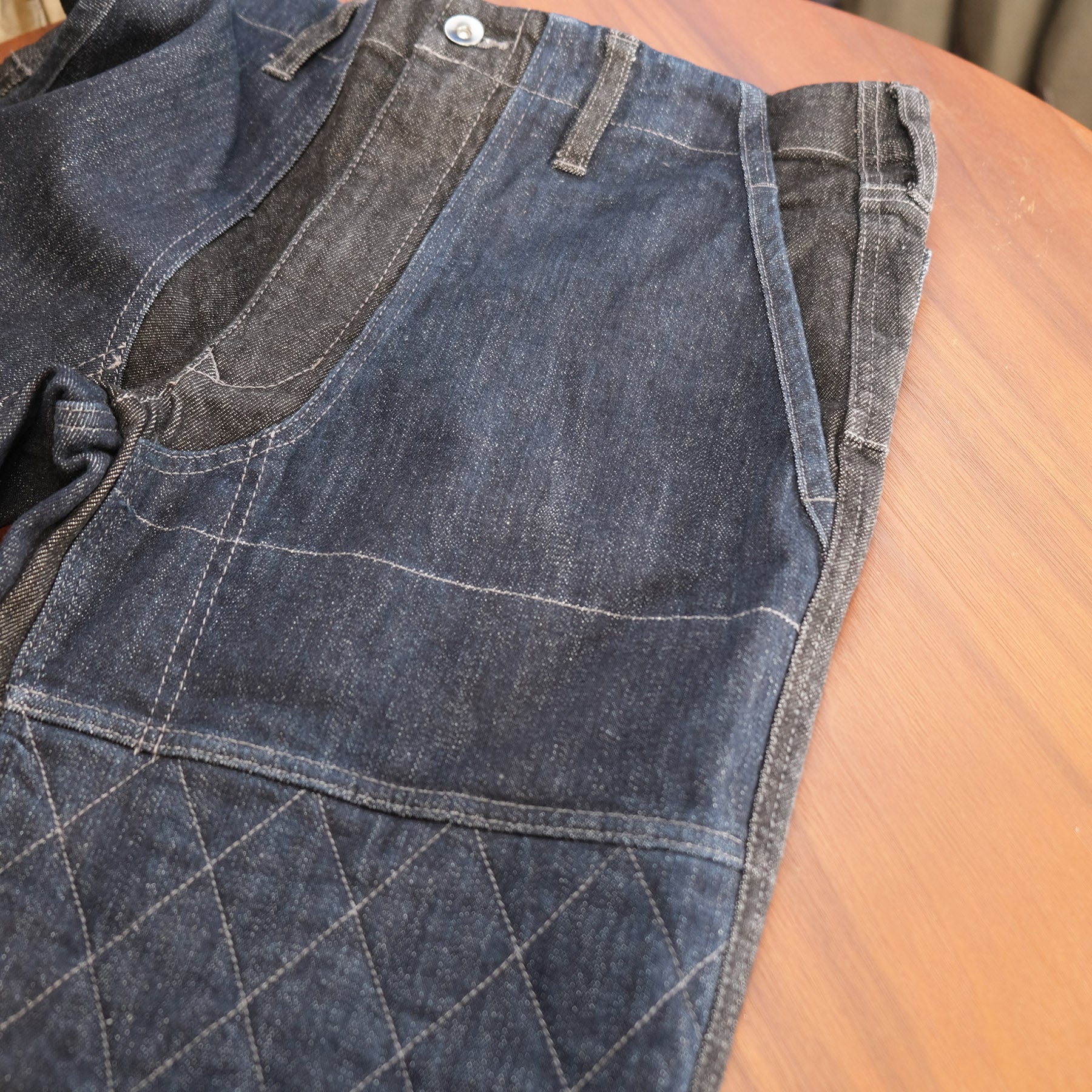 インディゴ&ブラックデニムのコンビにはグレーステッチ
