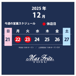 またイレギュラーで申し訳ございません!今週は月曜日と火曜日がお休みとなります。よろしくお願いいたします。 平日は13:00オープンとさせていただいておりますが、土日祝日は今まで通り11:00オープンです お知らせ この記事が気に入ったら いいね または フォローしてね! Follow @MaxFritz_tosu Follow Me 気に入ったらシェアお願いいたします! URLをコピーしました! URLをコピーしました! 【パトロールレポート】トライアンフでピラッと大村湾
