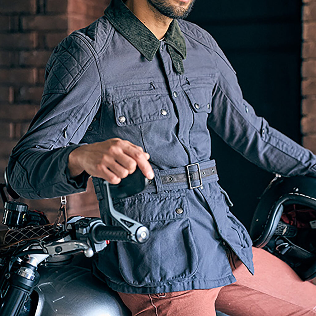 ベルト付きのクラシックテイストなジャケットです。