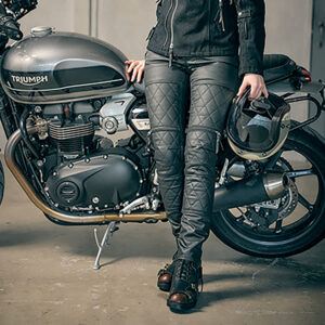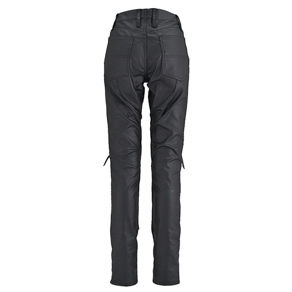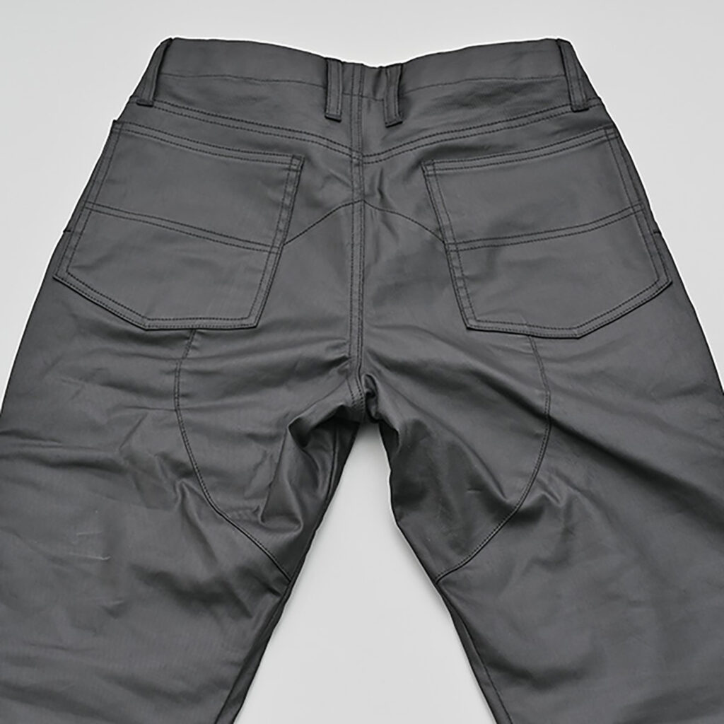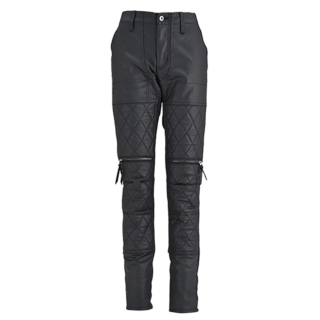 中綿と防風フィルム、裏地がない分スリムなシルエットを実現しながらも、元々はストレッチコットンですので伸縮性や軽さもあるためレザーパンツより気軽に穿けて動きやすいパンツです。