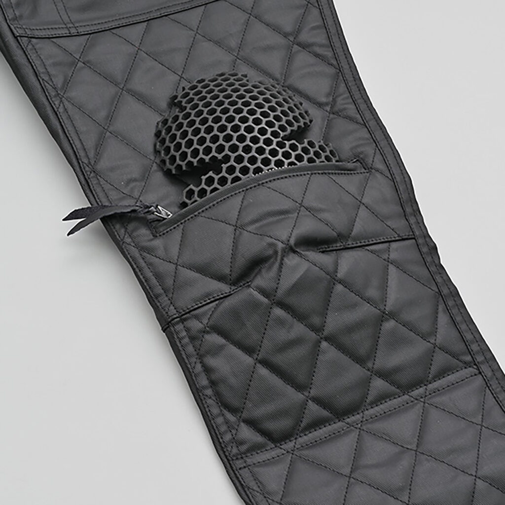 膝部分にはプロテクトパッド(別売)を装着可能です