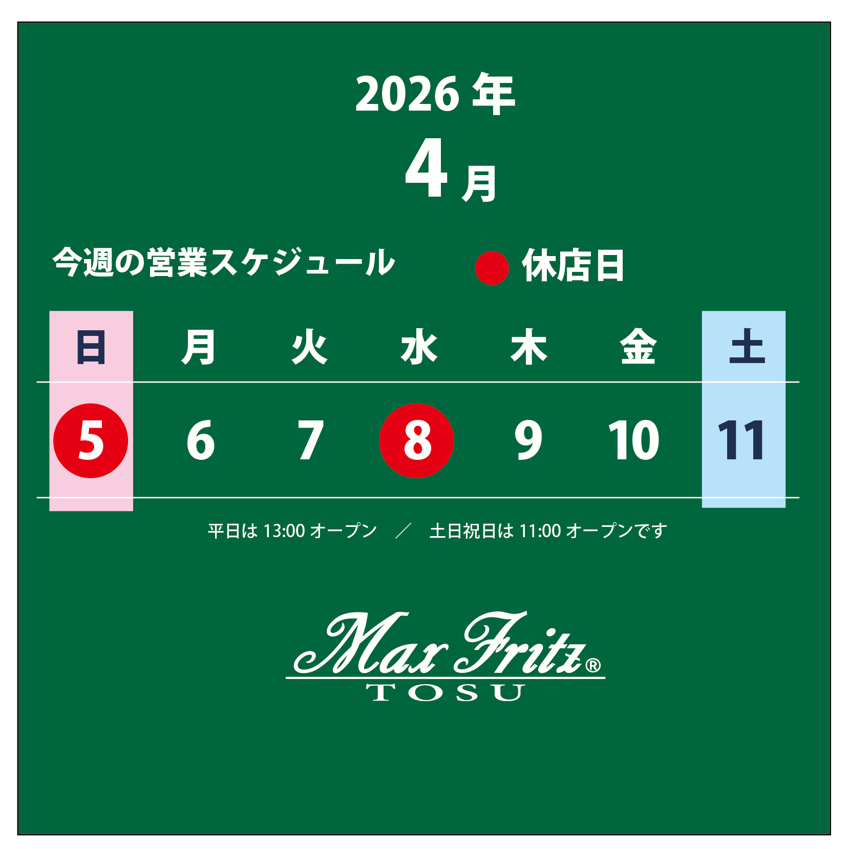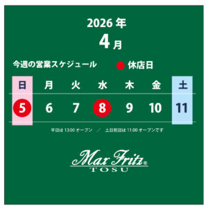 今週は水曜日がお休みとなります。よろしくお願いいたします 平日は13:00オープンとさせていただいておりますが、土日祝日は今まで通り11:00オープンです お知らせ この記事が気に入ったら いいね または フォローしてね! Follow @MaxFritz_tosu Follow Me 気に入ったらシェアお願いいたします! URLをコピーしました! URLをコピーしました! 【ロンT】スクランブルT入荷